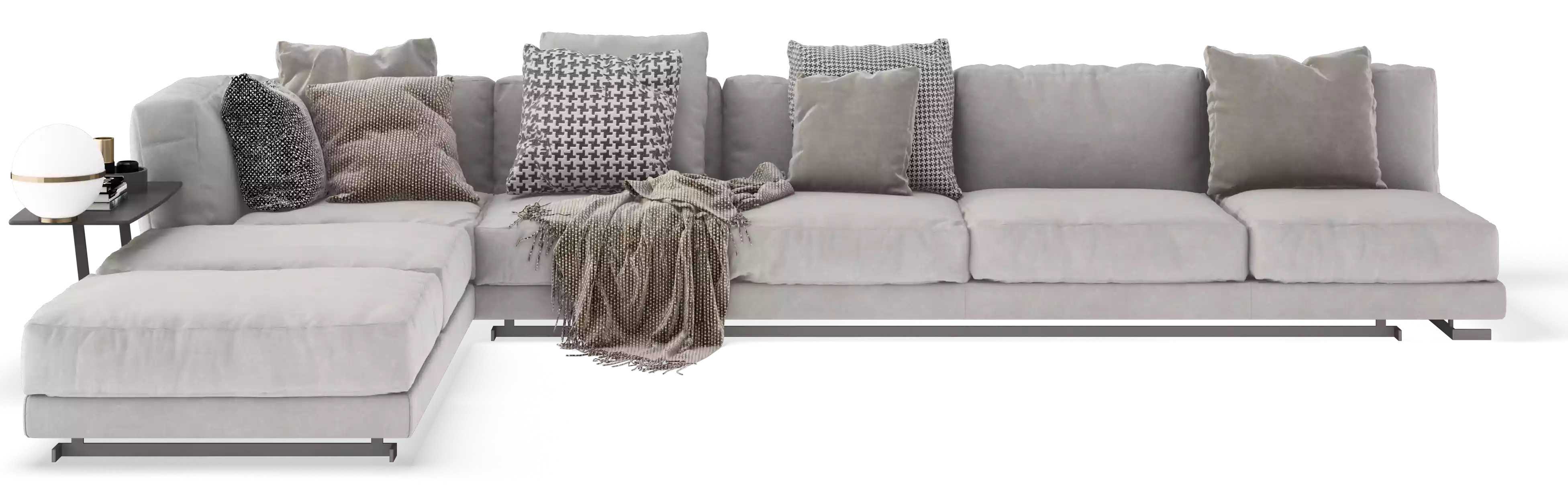 شكل حرف L معياري يخلق مزيجًا مثاليًا من الأناقة والمادة في مساحتك الخاصة. إنه يمثل البساطة الواضحة للتصميم التفصيلي لتوفير الراحة الكاملة في منطقة المعيشة الخاصة بك. إنه مصمم ليضم مساحة جلوس مريحة حيث يمكنك تخصيصها لتناسب احتياجات الاسترخاء الخاصة بك.